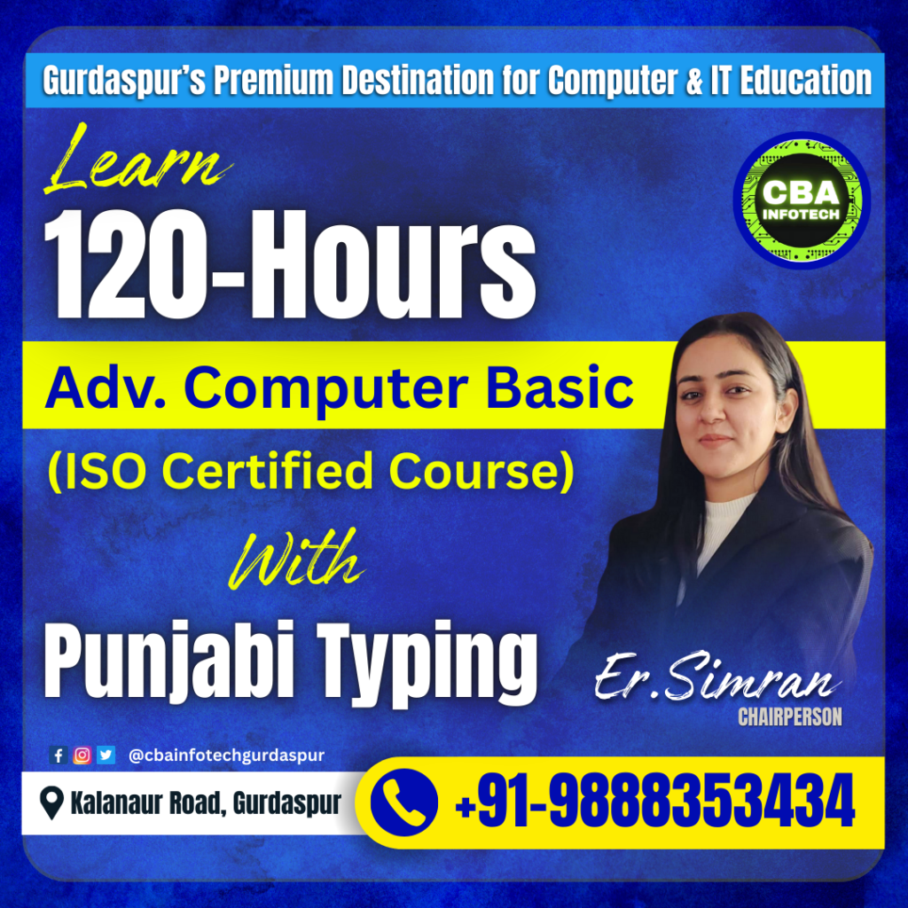 Located in Gurdaspur, this ISO-certified training program is designed to provide practical knowledge along with industry-relevant skills. The course is structured in a way that even beginners can confidently learn computers from scratch and gradually move toward advanced concepts.