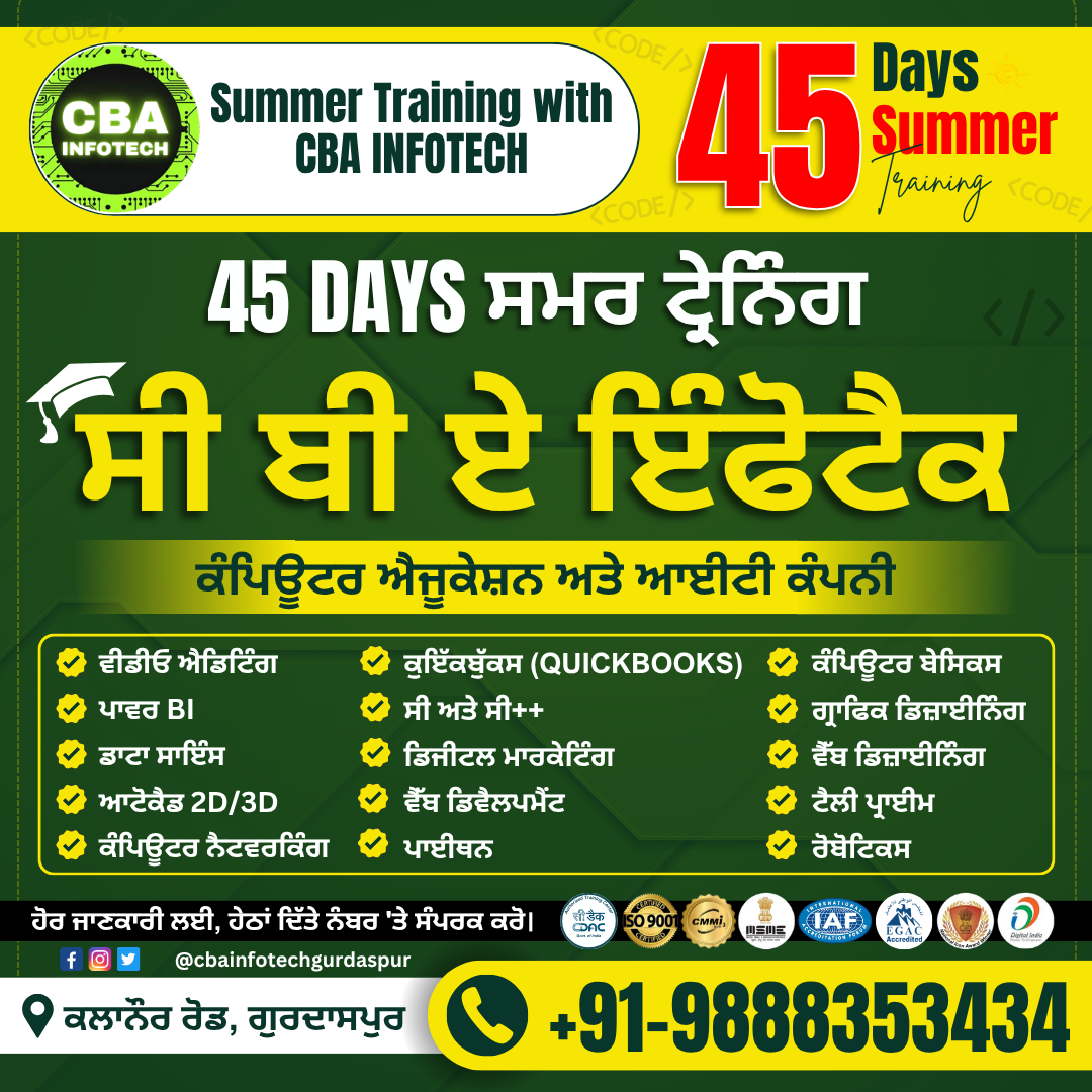 “45 ਦਿਨਾਂ ਦੀ ਸਮਰ ਟ੍ਰੇਨਿੰਗ – ਆਪਣੀ IT ਸਕਿਲਜ਼ ਨੂੰ ਬਣਾਓ ਮਜ਼ਬੂਤ”