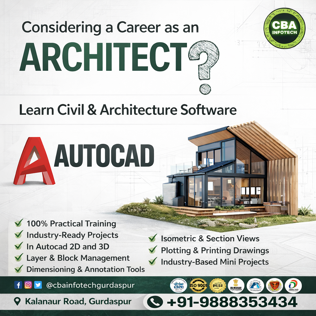 If you’re based in Punjab, enrolling in the best AutoCAD course in Gurdaspur can be your first step toward building a successful career in architecture or design.