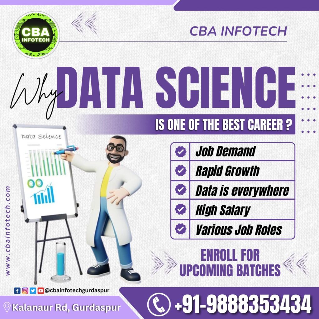 At CBA Infotech Gurdaspur, you can start your journey toward becoming a certified Data Scientist. With expert guidance, practical projects, and full career support, you’ll gain the skills needed to succeed in this exciting field.
