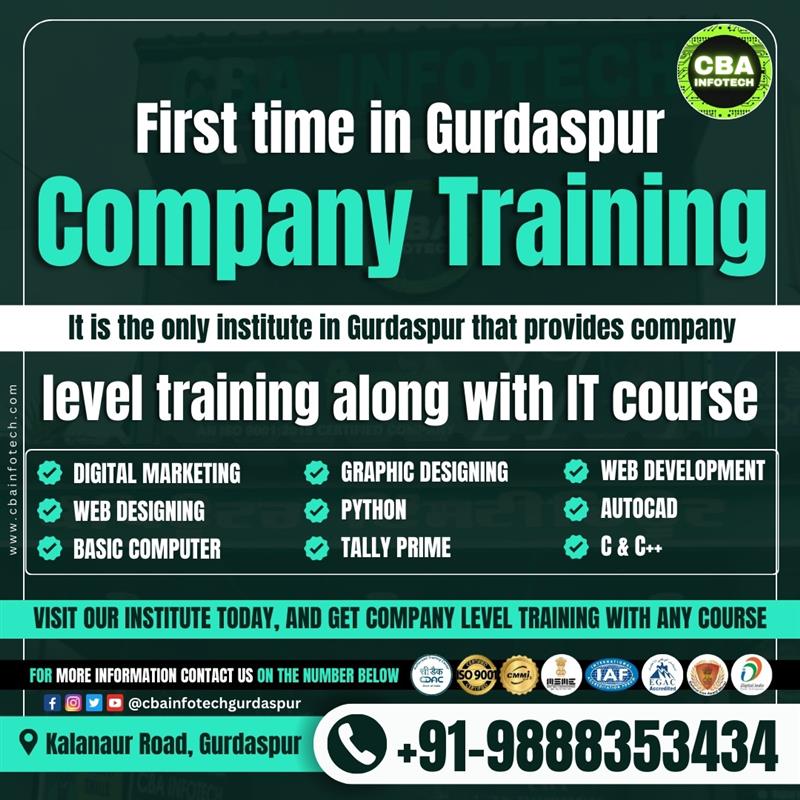 CBA Infotech is transforming IT training in Gurdaspur. The institute’s focus on company-level training ensures students learn what businesses need today. With courses like Digital Marketing, Python, Web Designing, AutoCAD, and more, learners gain practical skills to succeed in their careers.