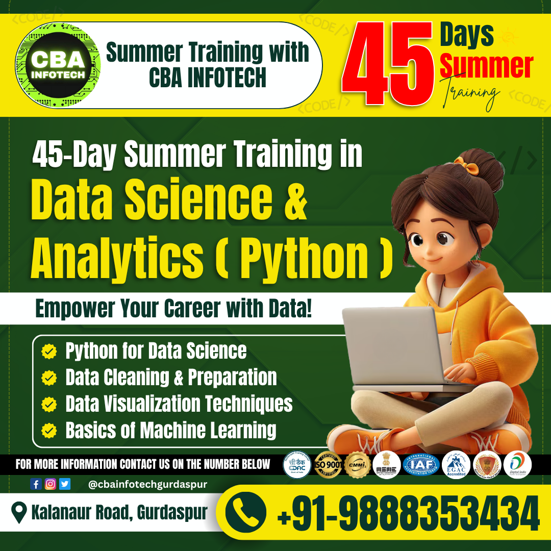 A 45-day summer training program in Data Science & Analytics with Python is an excellent opportunity to learn, grow, and build a strong foundation. Whether you are a student or a professional, this course can open doors to exciting career opportunities.