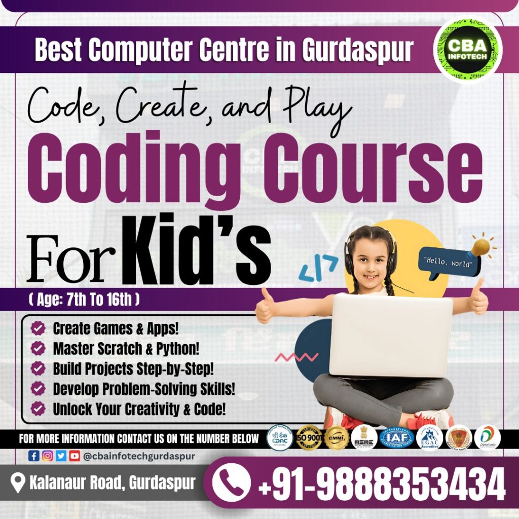 🚀 Give your child the future with CBA Infotech’s Kids’ Coding Course in Gurdaspur!