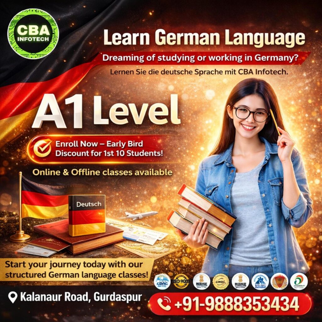 German is one of the most in-demand languages for students and professionals aiming to build a future in Europe. Whether your goal is higher education, career growth, or migration, learning German is a strategic step. CBA Infotech offers a comprehensive A1 German course designed to help beginners start from scratch and build strong language fundamentals.