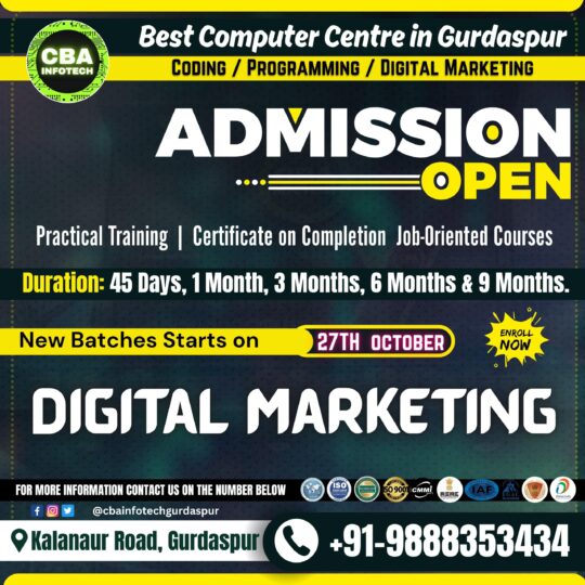 Popular CoursesTechTop Trendingਕੁੜੀਆਂ ਲਈ IT ਕੋਰਸ ਗੁਰਦਾਸਪੁਰ – CBA INFOTECH the best computer center in Gurdaspur