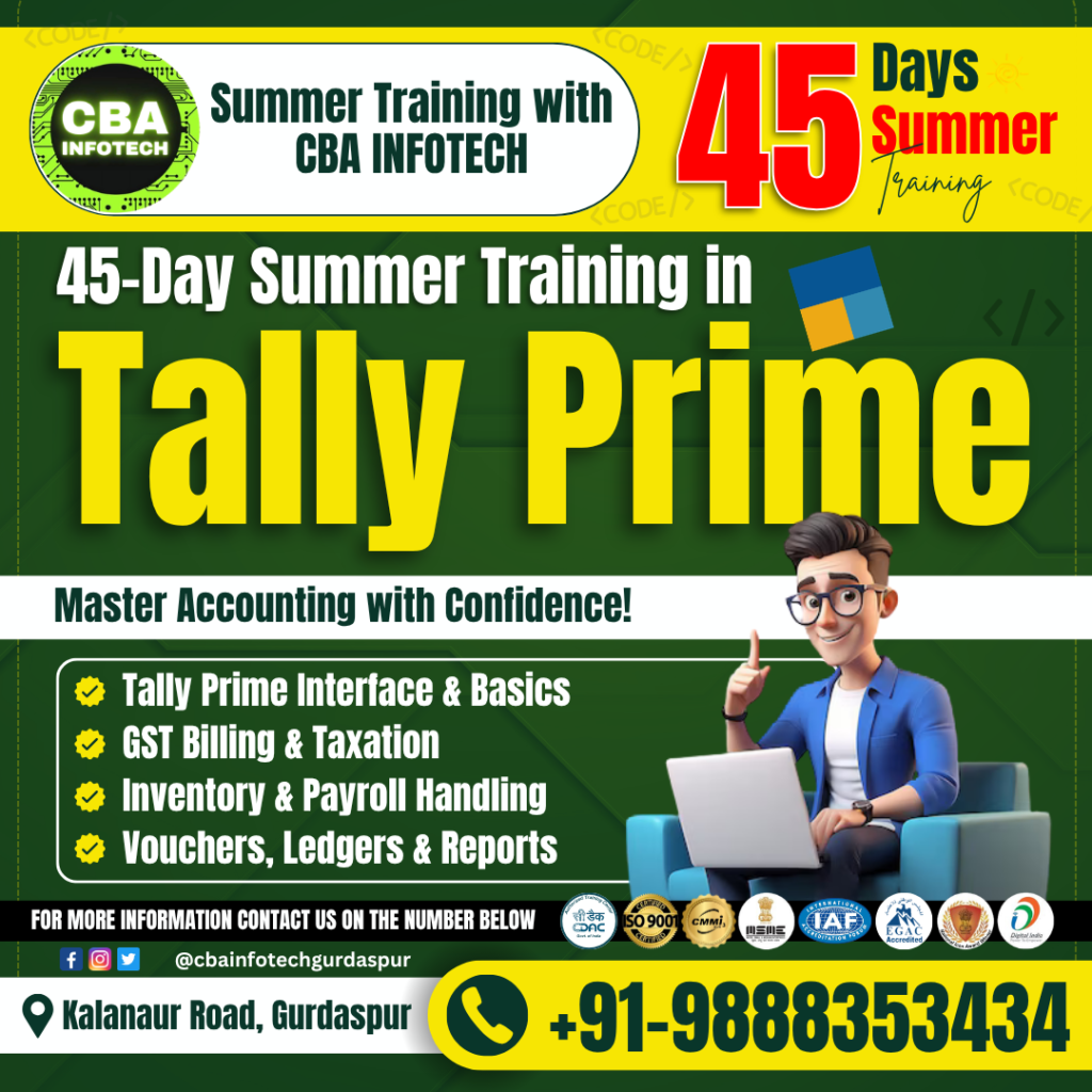 Are you looking to build a strong foundation in accounting and gain practical, job-ready skills this summer? The 45-Day Tally Prime Summer Training Program by CBA Infotech is designed to help students, fresh graduates, and working professionals master modern accounting practices using one of the most widely used software tools—Tally Prime.