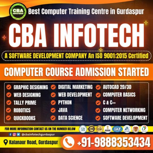 In today’s digital world, computer skills are no longer optional—they are essential for students, professionals, and entrepreneurs alike. If you want to build a career in software development, graphic design, digital marketing, or data science, choosing the right training institute is the first and most important step. If you are searching for the best computer training centre in Gurdaspur, CBA Infotech stands out as a trusted name for quality education, professional certification, and career-focused training.